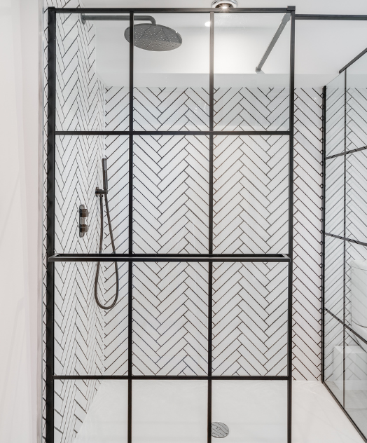 We LOVE this bathroom. The huge walk-in shower is such a treat and the crittall-style doors and black fixtures and fittings all create a fresh modern bathroom you can’t wait to use.