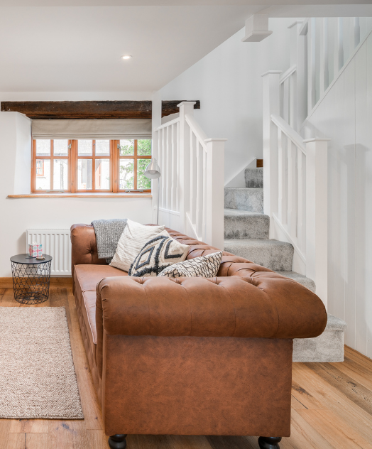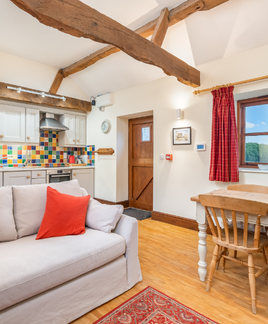 Inside Well Cottage, you’ll find a separate living room space, perfect for a cosy evening. The sofa can be transformed into a double sofa bed, ideal for families with children.