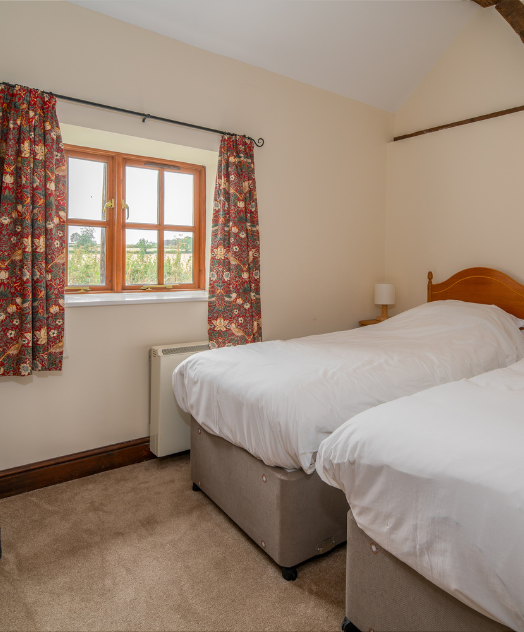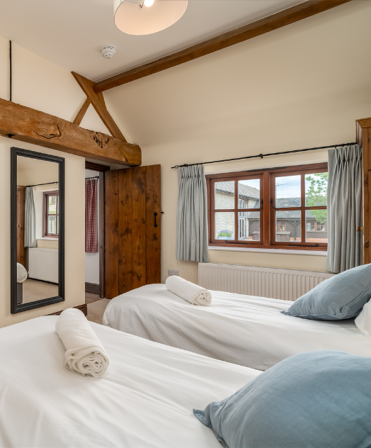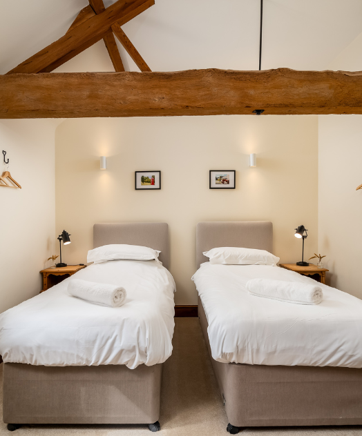 The second twin bedroom has a rustic charm, with exposed beams and ample space for hanging your suits and dresses using our hangers.