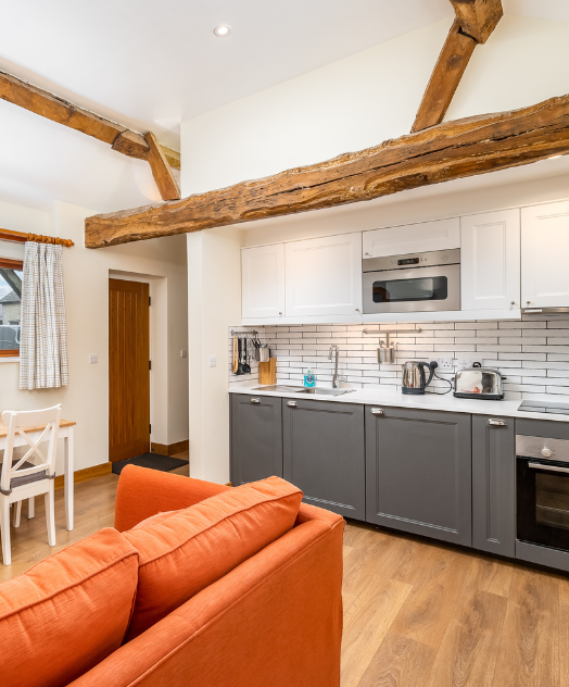 The Granary has a separate kitchen and dining area, creating an inviting space to eat, relax, and spend quality time with your loved ones.