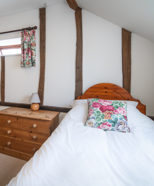 Bedroom 3 is a double bedroom that is filled with natural light and has rustic beams, as well as a comfortable double bed for a great night’s sleep.