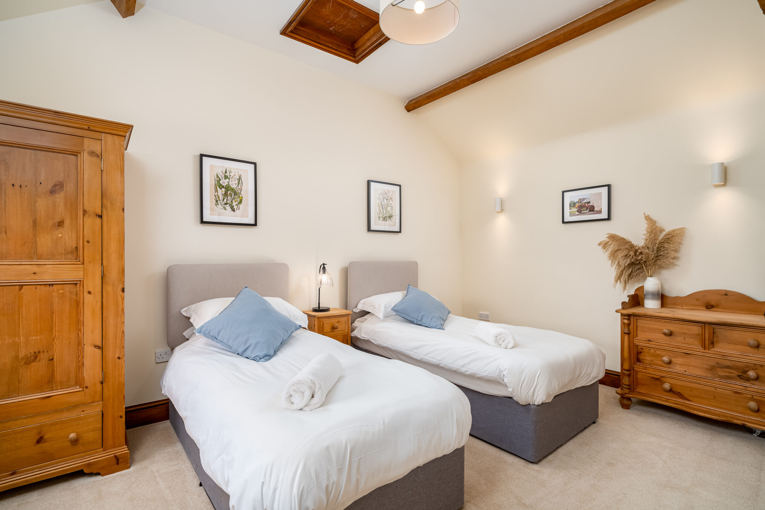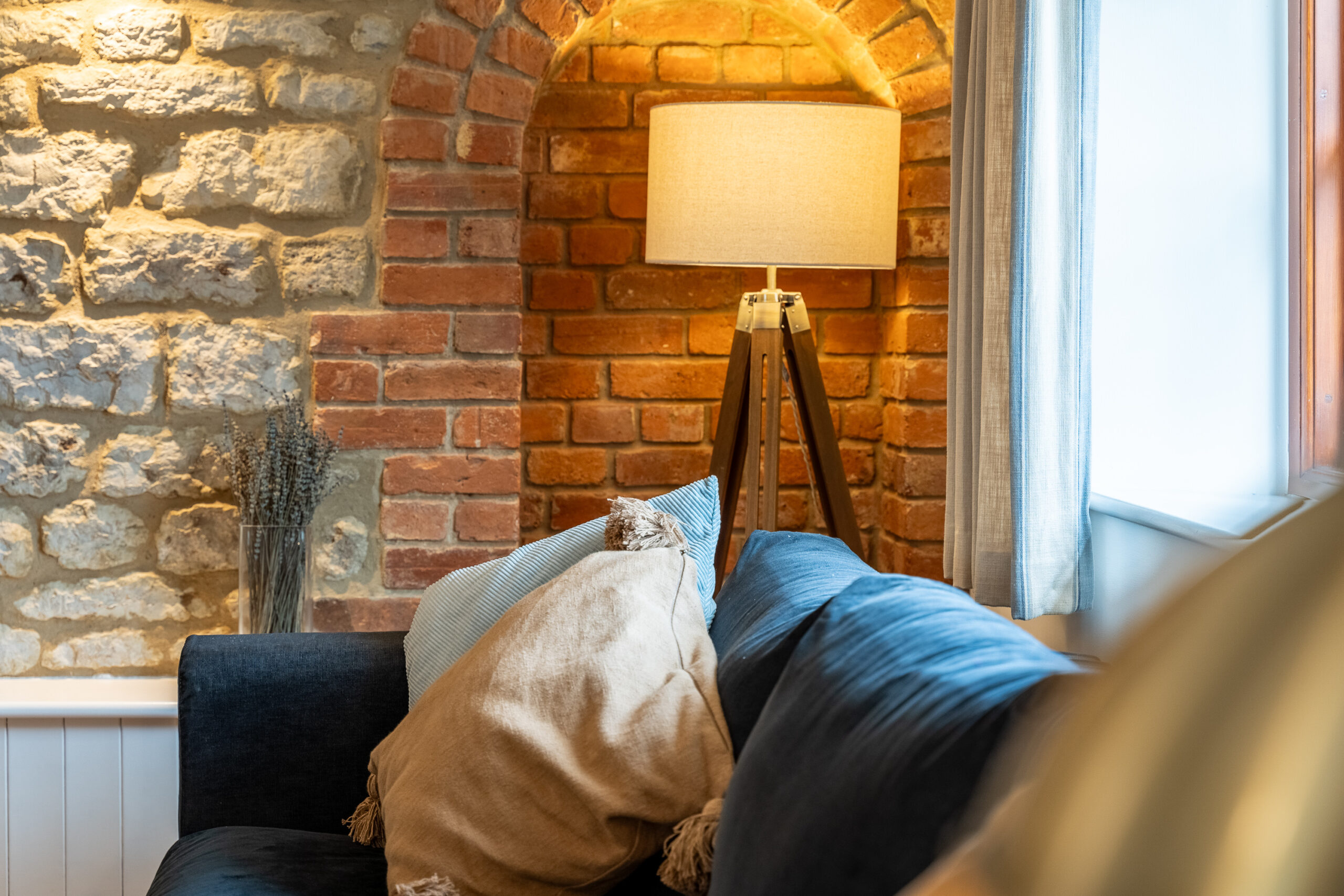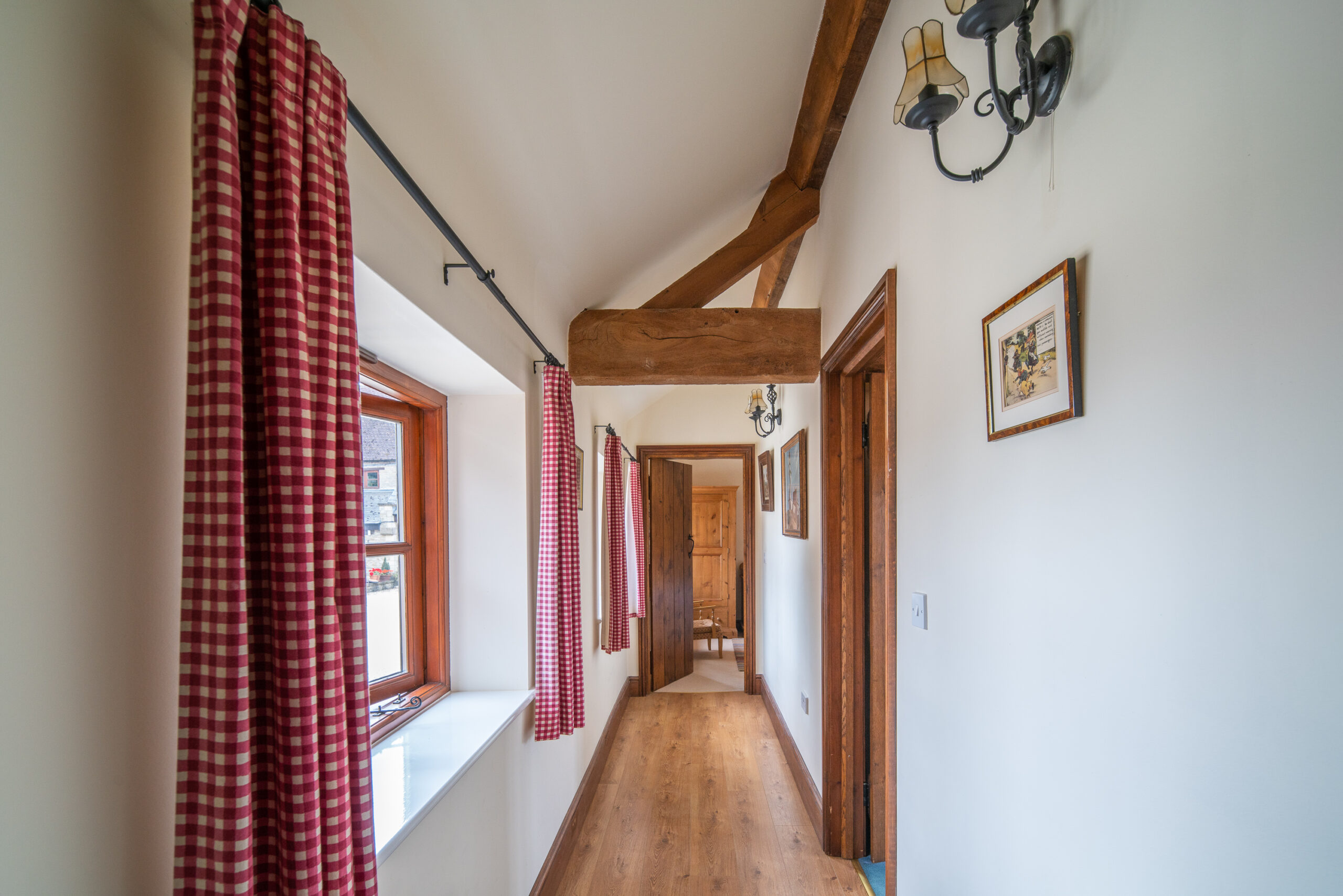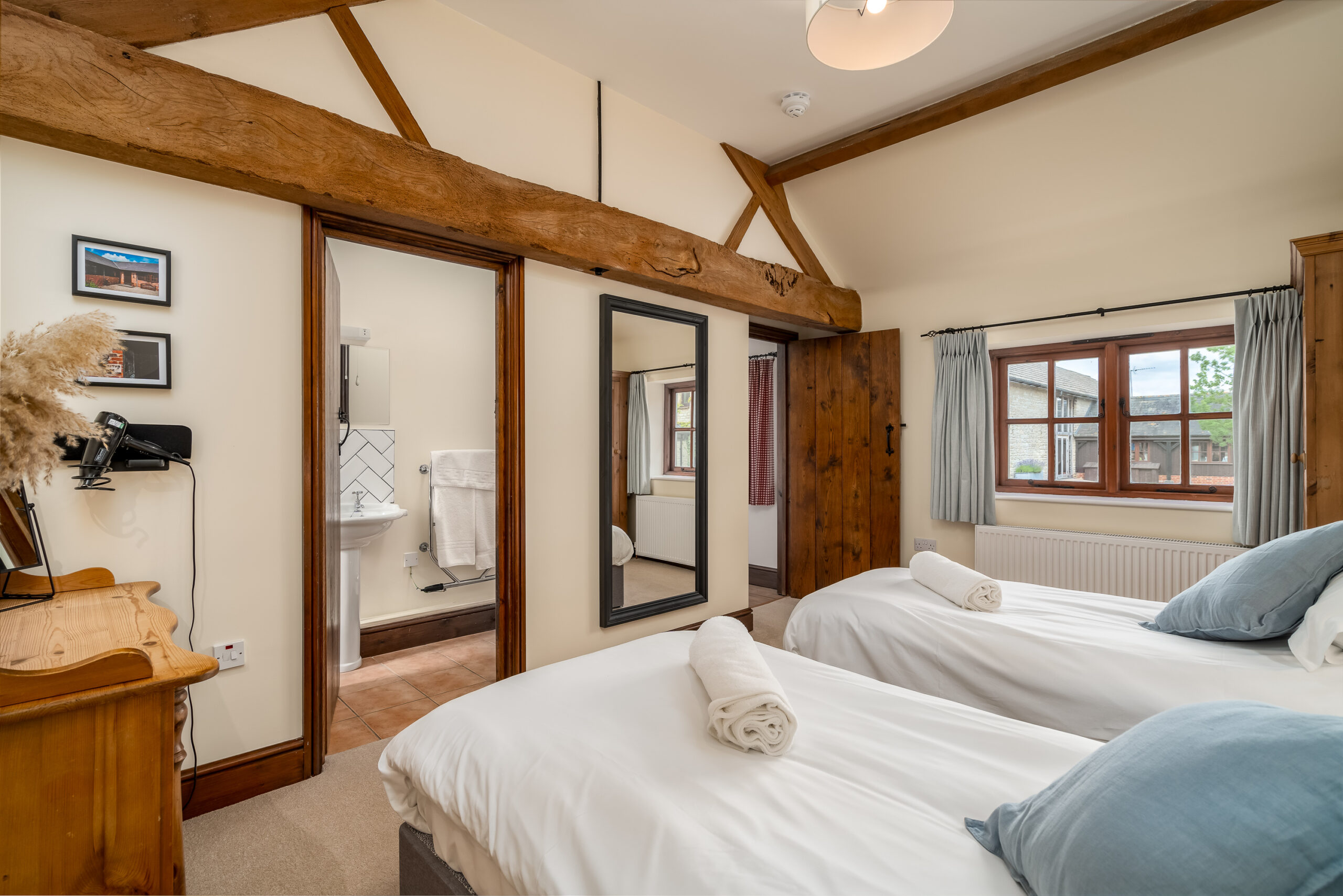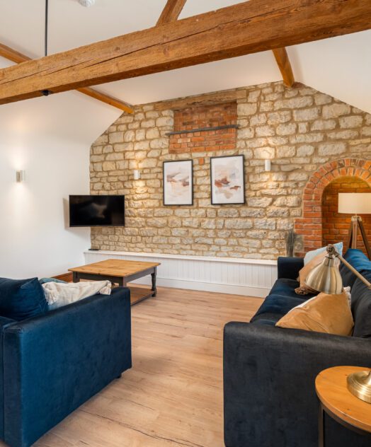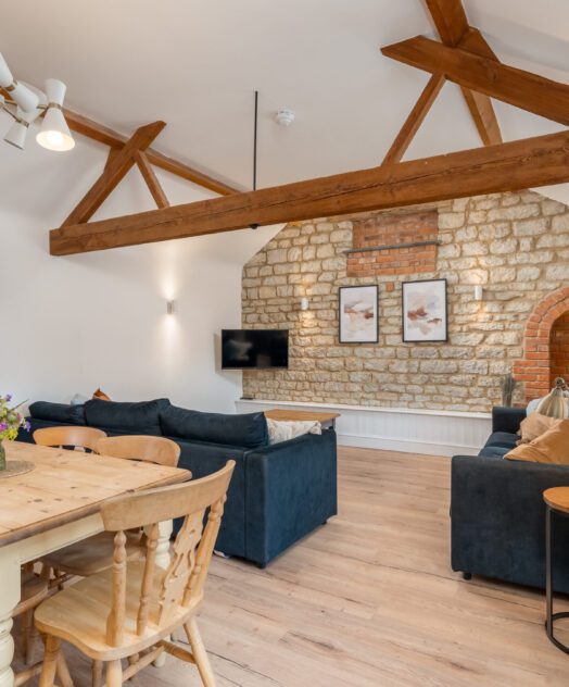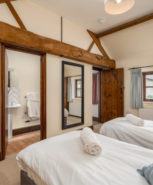 Our largest cottage is a spacious single storey stone, brick and timber barn conversion. There are three double/twin bedrooms, two of which are en-suite, a family bathroom and hallway leading to an open-plan kitchen/living area.