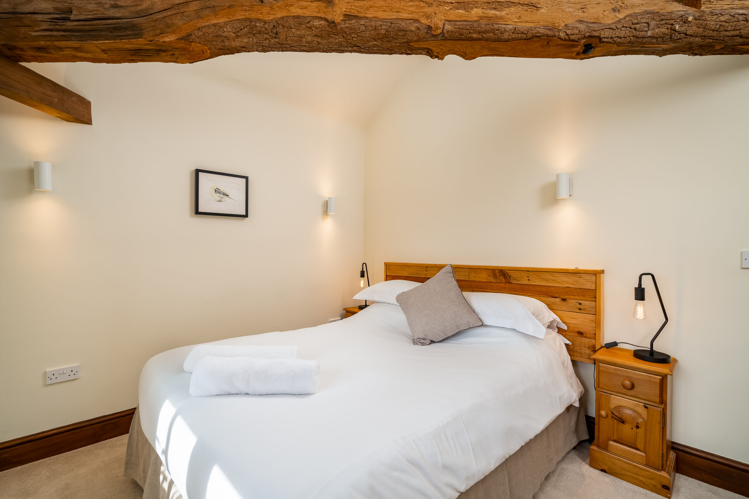 In the lower courtyard is Carter’s cottage, our smallest cottage, closest to the wedding barn. This cottage comprises of a double bedroom, a wet-room style bathroom with toilet and shower and an open plan kitchen and living area all on one floor.